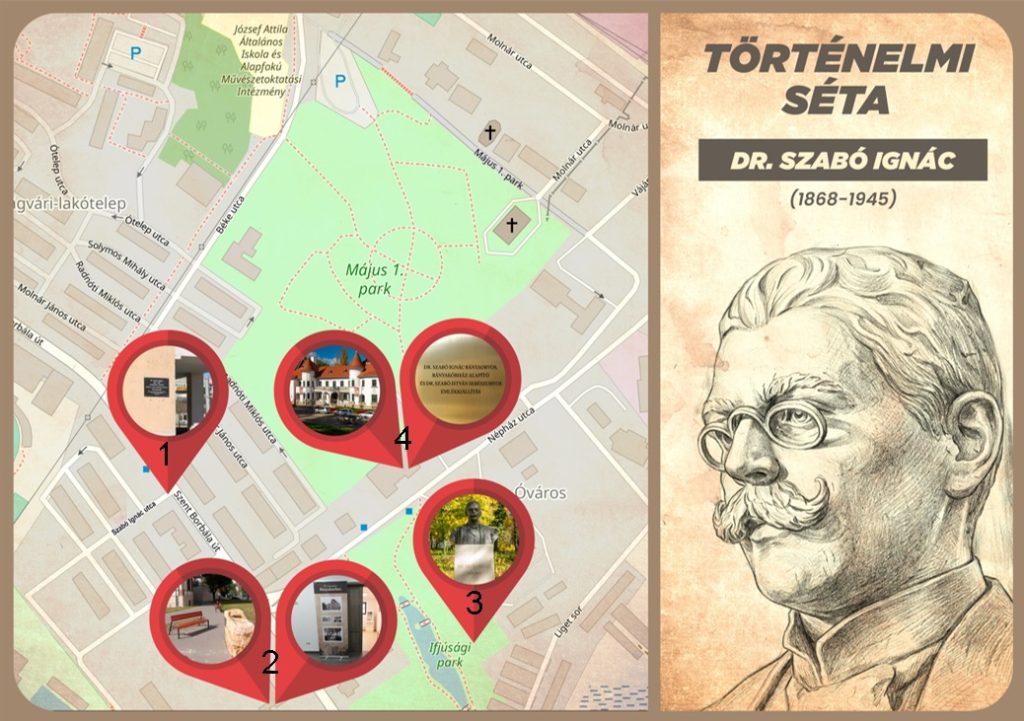 Elindulva a Szabó Ignác emléktábla – Szabó Ignác utcából, a parkban Szabó Ignác mellszobránál időzve elsétálva a Tulipános-házhoz a Szabó Ignác emlékkiállításra közel teljes a kép az emlékezet kapcsán.Teljessé a Tulipános-házban megnyílt kórházi orvosi emlékszoba és a parkban a dr. Szabó Ignác park-emlékhely teszi.